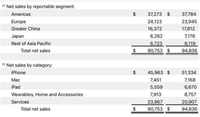 "애플은 다음 분기 총매출이 한 자릿수 낮은 성장률을 기록할 것으로 예상하며, 이 기간 동안 아이패드 매출이 두 자릿수 성장률을 기록할 것으로 예상합니다. 서비스 성장률은 회계연도 상반기와 비슷한 두 자릿수를 기록할 것으로 전망합니다."